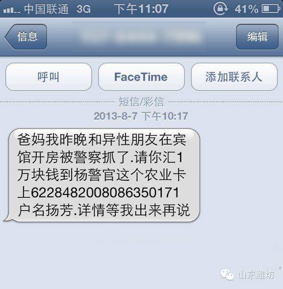 类似的还有:“我是您儿子的朋友,他出车祸了现在正在昏迷,您打10000块钱住院费吧。”