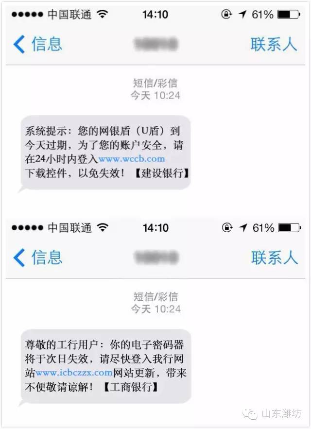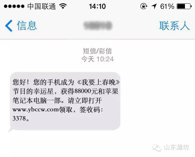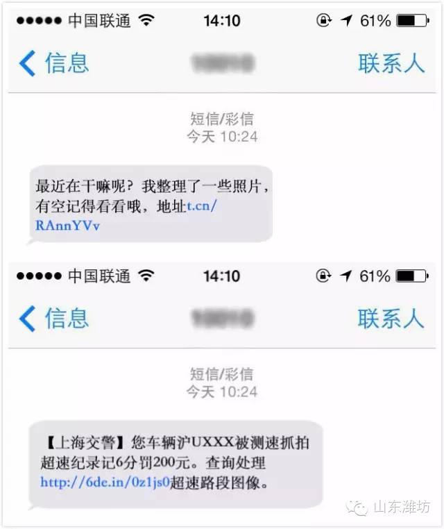 附带链接的大多是仿冒短信,这类短信多是通过伪基站发送。当碰到链接时,千万要谨慎辨别,不要轻易点击。
