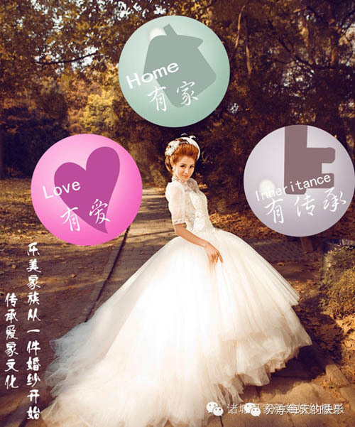 “有家,有爱,有传承”—— 诸城皇家新娘乐美家族从每一件婚纱、每一本影集、每一场婚礼开始,把传承“爱家文化”作为自己的职责,让爱和情传递和延伸到每一个温馨和谐的家!
